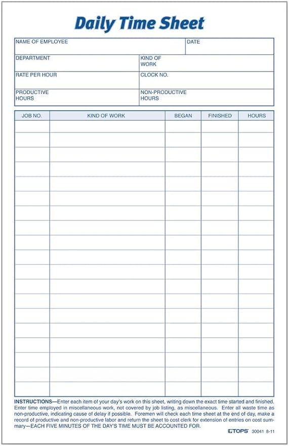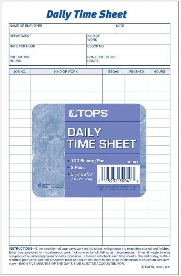 TOPS Daily Employee Time And Job Sheet, 6 x 9.5 Inches, 100 Sheets per Pad, 2 Pads/Pack (30041)