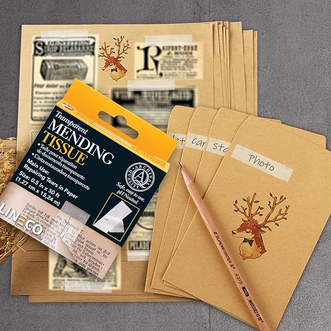 Lineco Archival Document Repair Tape, Repairs Paper Documents, Maps, Ephemera, Photos and Artwork. Acid-Free Translucent Tape 0.5" x 50', Pack of 1