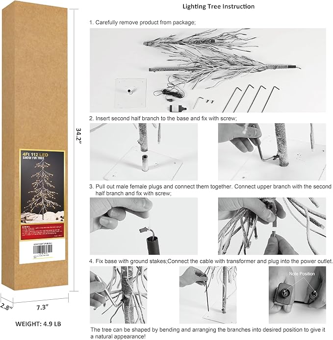 - Unique Design of 4FT Snowy Fir Tree: The tree is designed to resemble a fir tree with artificial snow and frost, giving it a winter wonderland appearance. This can enhance the festive and seasonal feel of the tree.