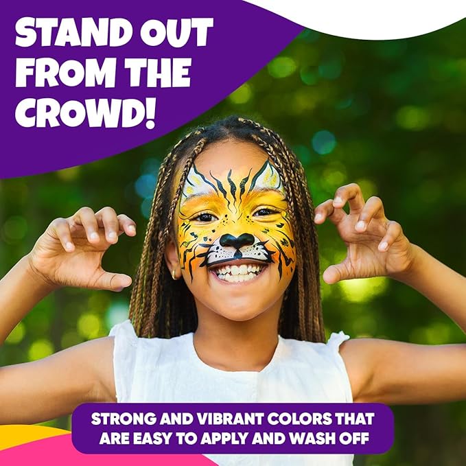 - πΆ πππ‘π§ππ ππ’π₯ π¦ππ‘π¦ππ§ππ©π π¦πππ‘: Gentle on sensitive skin, our water based face paint are EU & US compliant, baby safe, and crafted with cosmetic-grade, hypoallergenic, paraben-free, vegan ingredients. Effortlessly create and remove stunning looks, perfect for kids' parties or Halloween makeup.