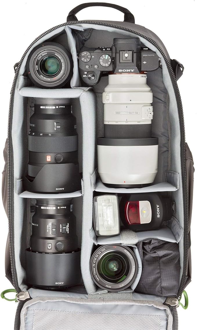 - Fits 1 standard-size DSLR and 4–6 standard zoom lenses including a 70-200mm f/2.8 attached with hood in the shooting position or 2 large Mirrorless bodies and 5–7 lenses plus a flash, Maximum lens size: 300mm f/2.8