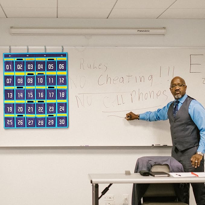 - 【Cell Phone Pocket Chart for Classroom】Used as classroom phone storage and calculator storage. Perfectly to hold students cell phone, calculators in class. Let students focus more on learning, say goodbye to students playing with their phones in class and create an efficient classroom.