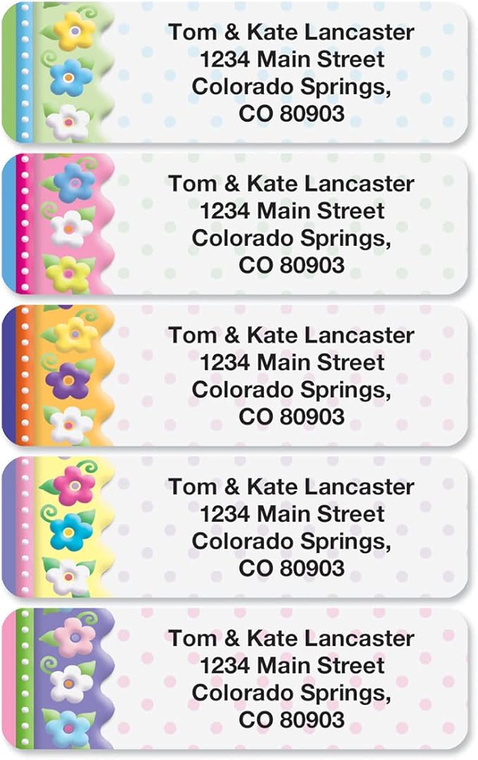 Colorful Images Frosting Flowers Rolled Personalized Return Address Mailing Labels with Dispenser, Customize with Name & Shipping Address, 500 ¾” x 2½” Self Adhesive, Easy Peel Label Roll