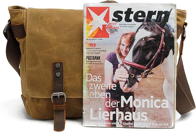 - UPERIOR MTERAIL -- This messenger bag is made of high density wax canvas fabric + genuine leather trim + quality hardware zipper. Wearable, durable, sturdy and waterproof.