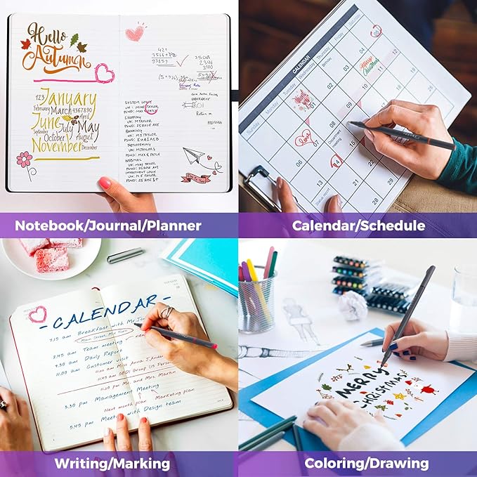 - SMOOTH WRITING: Colorful Fine-tip marker pen set with superfine, metal-clad fine-tipped and outstanding performance in all areas of writing, drawing, sketching, and coloring, easy and comfortable to write. You will also find them great for school, office, home, work, business, colleagues, church, club, and organization activities.