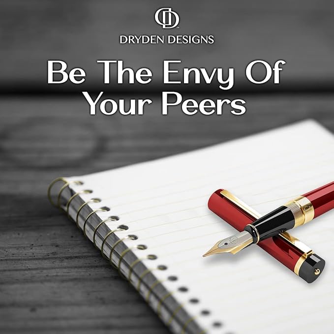 Dryden Designs Fountain Pen Medium Nib Gift Pouch - with 24 Ink Cartridges - MCM (Red)
