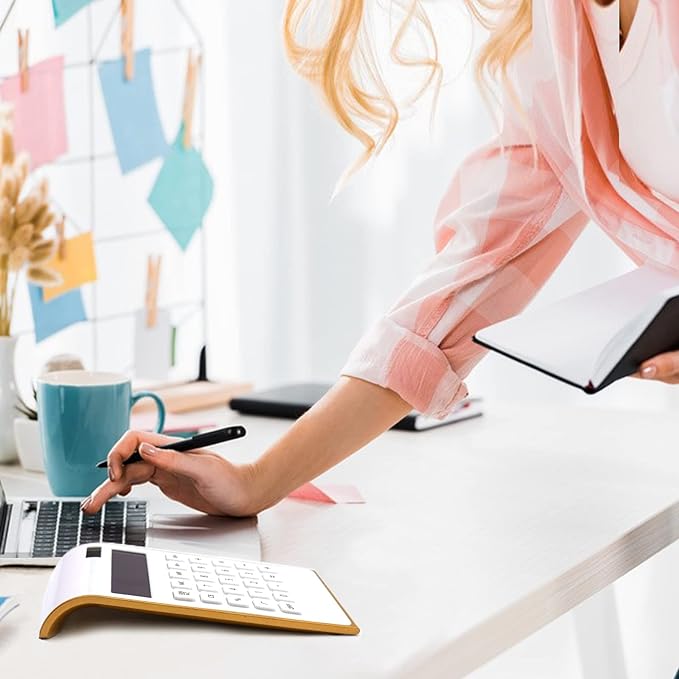 Calculator, 10 Digits Solar Battery Basic, Dual Powered Desktop Calculator, Tilted LCD Display, Inclined Design Slim Desk Calculator by Sportsvoutdoors (White)