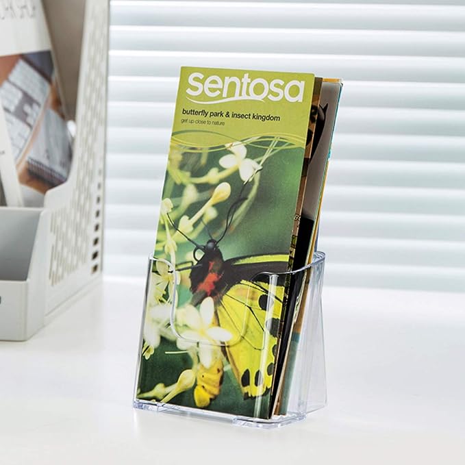 - Slant Back Design: The flyer holder is designed with a stable slant base. With the innovative slant-back self-standing design, the plastic brochure holders are stable enough which makes it an ideal choice for displaying images, brochures, business card and advertising pamphlets.