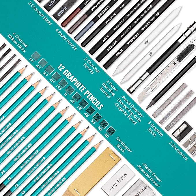 - Novice To Professional: start sketching as soon as you open the drawing kit! Complete drawing supplies set with a sketch pad, art pencils, kneaded eraser, pencil sharpeners