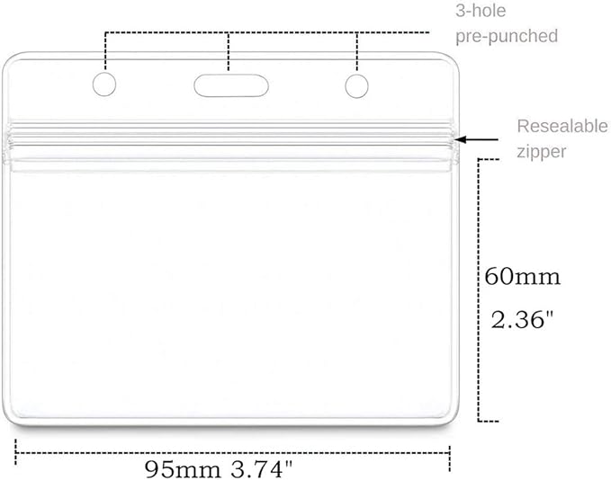 - WATERPROOF, DURABLE, REUSABLE, RESEALABLE: ID & Name card holder pouch is made of flexible, clear, waterproof, and tear resistant. Keep your Name tags, RFID badge, bus card, passes, hotel keys, your credit cards and employee badges SAFE, SECURE and DRY. Unlike other ID holders, our zip lock makes sure to keep everything dry and keep you worry free. No more worries about holes and tears caused by pins and clips.