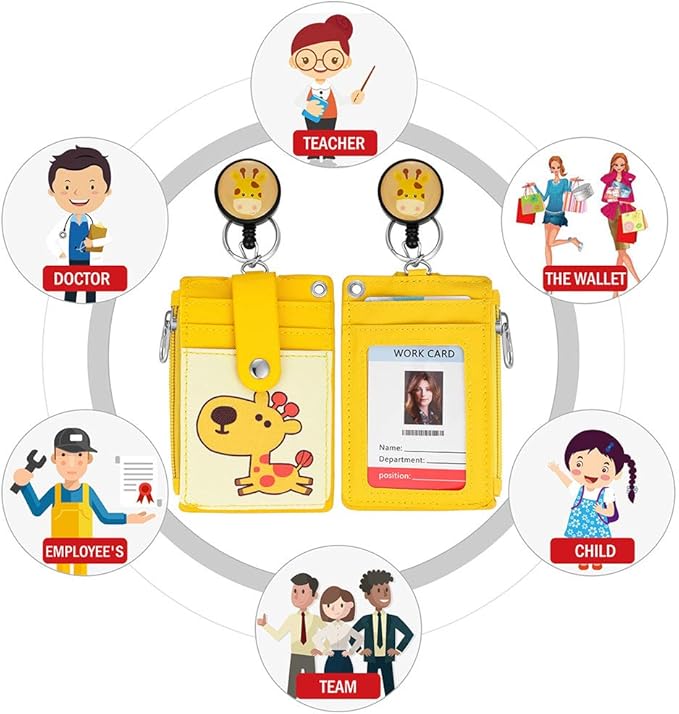 Cute Badge Holder Retractable Lanyard Reel Clip with Heavy Duty Carabiner, 1 Clear ID Window, and 4 Card Slots in 2 Sided for Students Teens Boys Girls Women (01 Yellow Deer)
