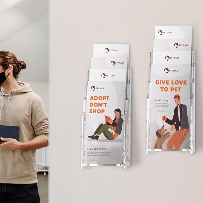 - PREMIUM ACRYLIC MATERIAL: This brochure holder is made of premium-quality clear acrylic plastic. Acrylic is as clear as real glass, it has more advantages than glass like impact, scratch and weather resistant. So that it is more sturdy and durable.