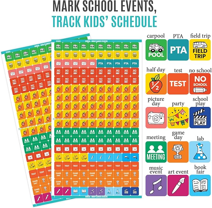 - Also includes ‘no school’, half day, PTA, practice, game day, field trip, tests, car pool stickers