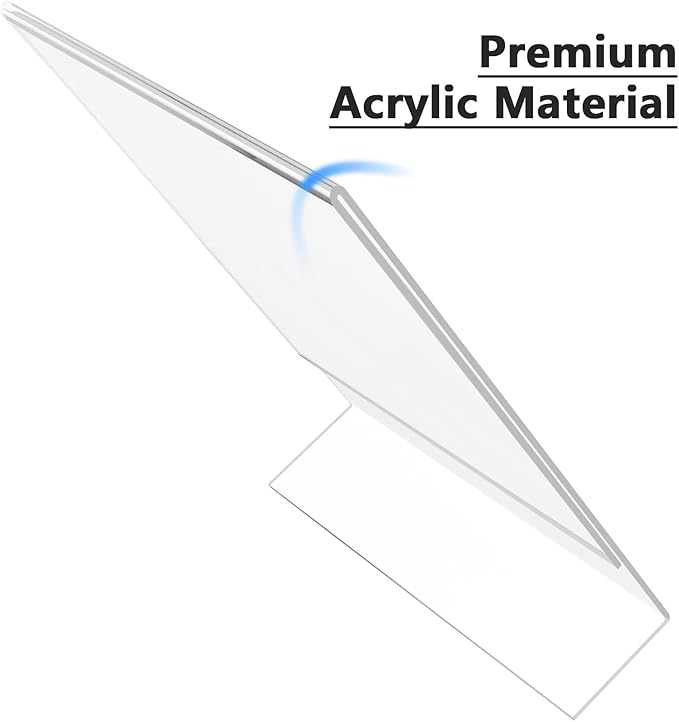 - Premium Acrylic Material: Acrylic sign holders are made from high quality acrylic which makes it more stable and durable. Clear acrylic sign holder will not dim or turn yellow under continuous exposure to the sunlight which offers a superb display effect.