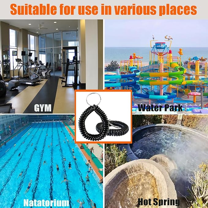 - Pack of 36 plastic coil stretch wristband keychains with black color, fit for personal items distinction, bunches of keys, luggage tags, memory sticks, pet name tags, etc.