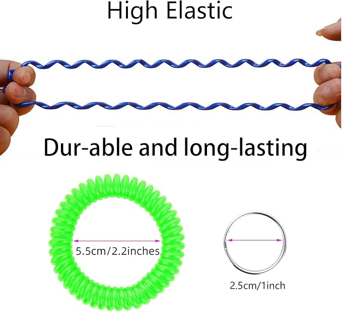 - Pack of 36 plastic coil stretch wristband keychains with green color, fit for personal items distinction, bunches of keys, luggage tags, memory sticks, pet name tags, etc.