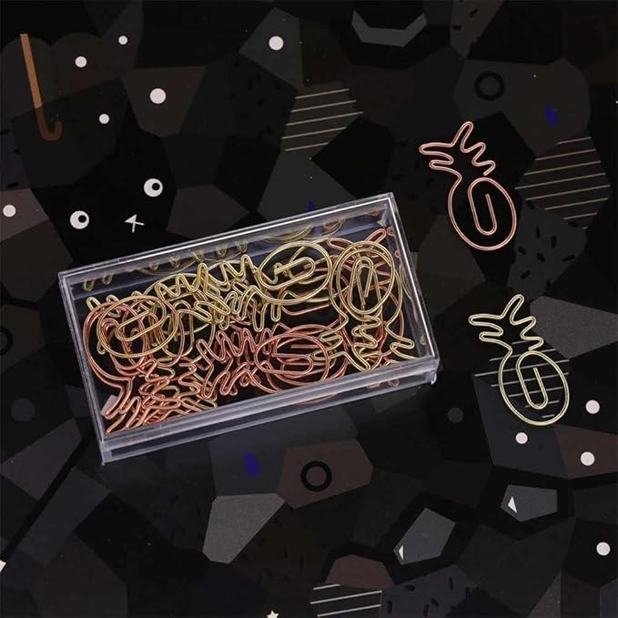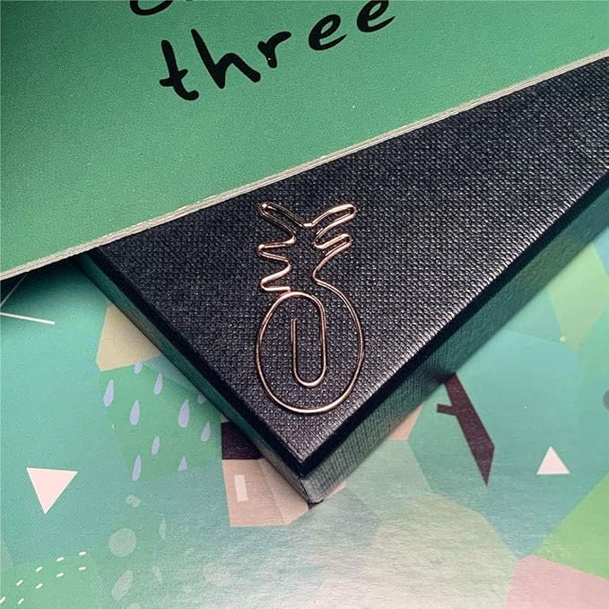 OWLFAVO 40pcs Pineapple Shape Paper Clips with Clear Box, Rose Gold and Yellow Gold, Funny Cute Paperclips Bookmarks Planner Clips for Fun Office Supplies School Gifts Wedding Decoration