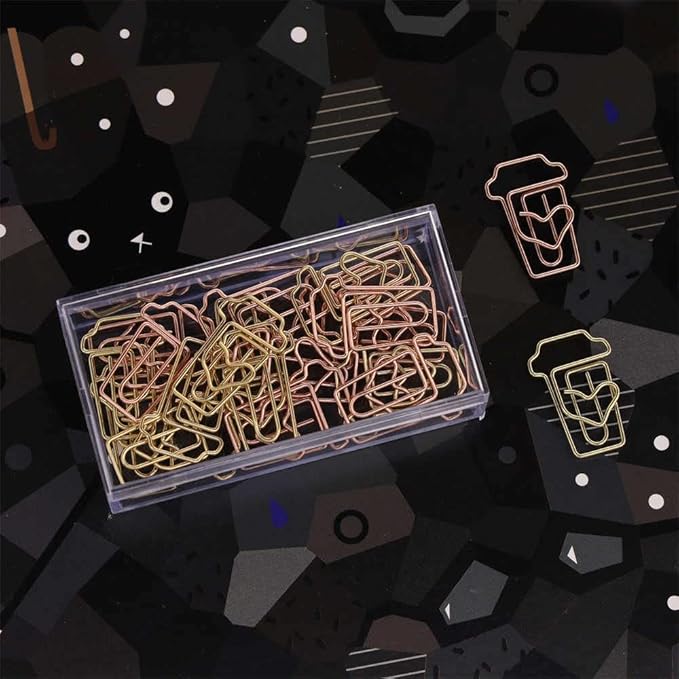 OWLFAVO 40pcs Coffee Cup Shape Paper Clips with Clear Box, Rose Gold and Yellow Gold, Funny Cute Paperclips Bookmarks Planner Clips for Fun Office Supplies School Gifts Wedding Decoration