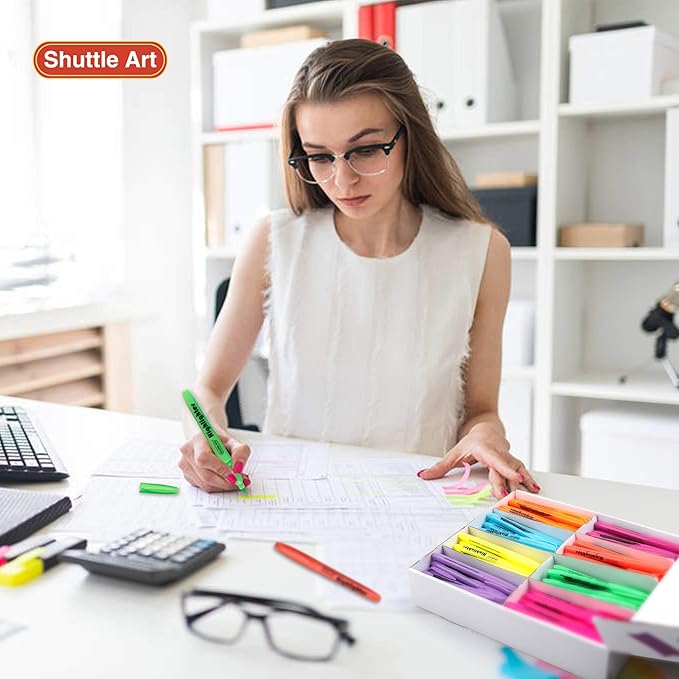 - NO BLEEDING & LONG-LASTING: Premium quick-dry ink drawing on words stay crisp and clear without smearing, leaking, fading or bleeding (let ink dry before highlighting). Each liquid highlighter is equipped with a durable pen cap to prevent ink from drying out for long-lasting use. Shuttle Art highlighters conform to ASTM-D4236.