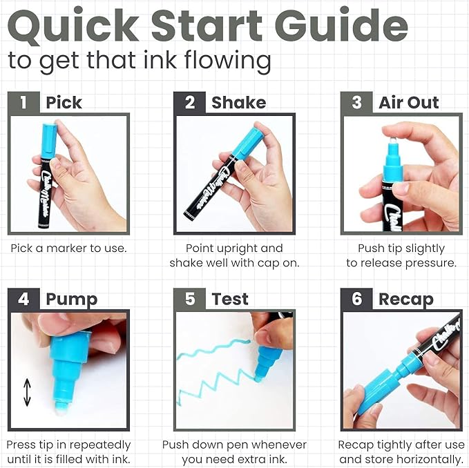 - Long Lasting - While other pens crack under heavy use, our richly pigmented chalk marker pen set stays fray free.