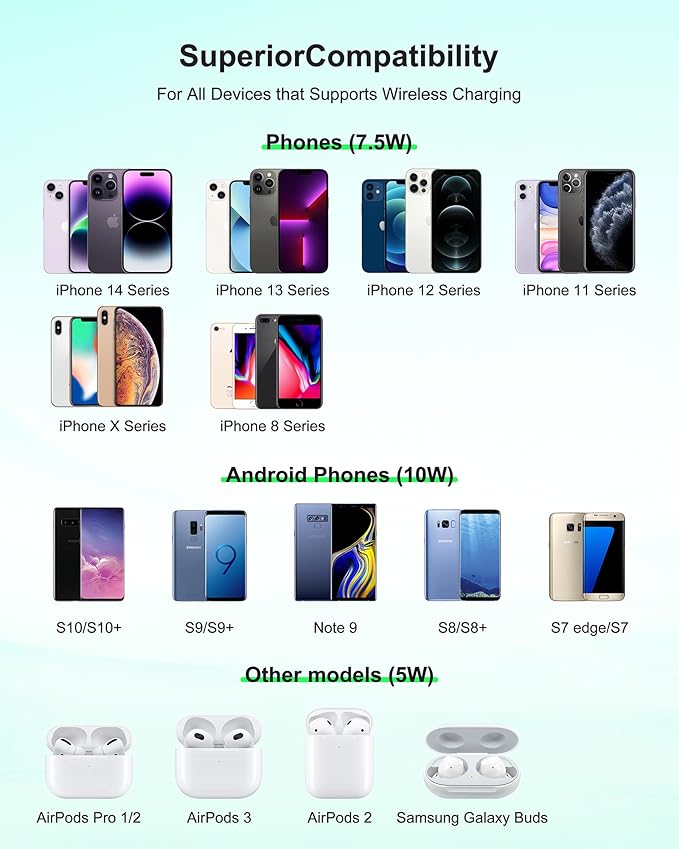 - Mouse Pad with Wireless Charging : Desk Mat with 10W wireless charging function. Gaming Mouse Pad compatible with iPhone 15/14/13/12/11/X/XR/XS/8 series, Samsung Galaxy S23/S22/S21/S20/S10/S9/S8/Note 9/8 and other smartphones that support wireless charging and other Qi enabled devices. (Note: Power adapter is not included with this Mousepad)