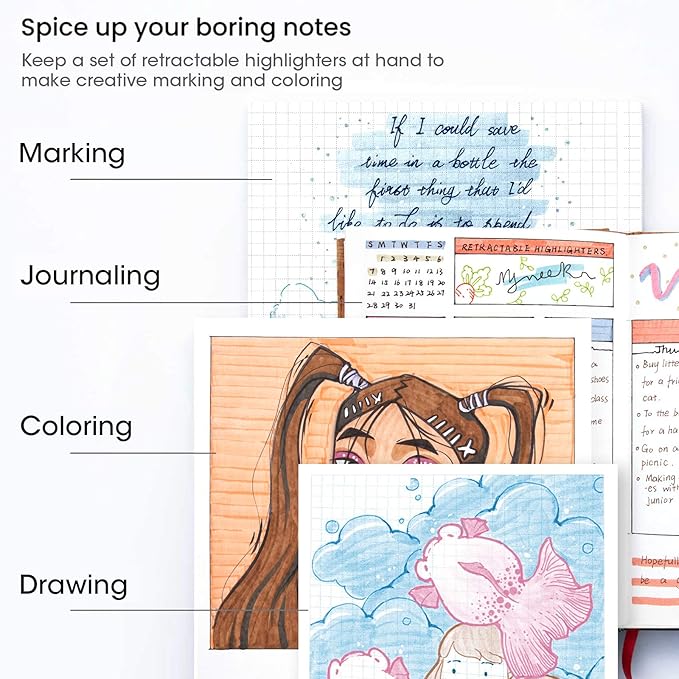 - The nib automatically retracts when you clip the highlighter on your book or pocket, preventing stains or ink leakage when forget to retract the nib.