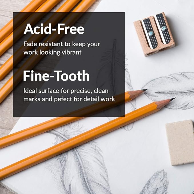 - DURABLE AND RESILIENT: Won't bleed and stands up against daily wear & tear including multiple erasures and redrawing. Features a sturdy cardboard back allowing you to draw on your lap. These drawing pads are ideal for beginners and artists.