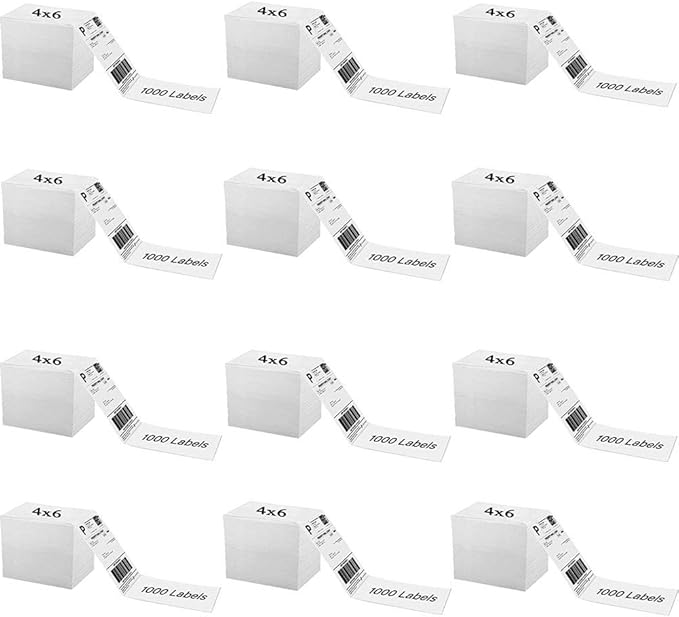 OausTect 4x6 Shipping Label 12000 Fanfold Labels for Rollo, Zebra Direct Thermal Printer, with Perforations - 12 Stack (12 Stack/12000 Labels)