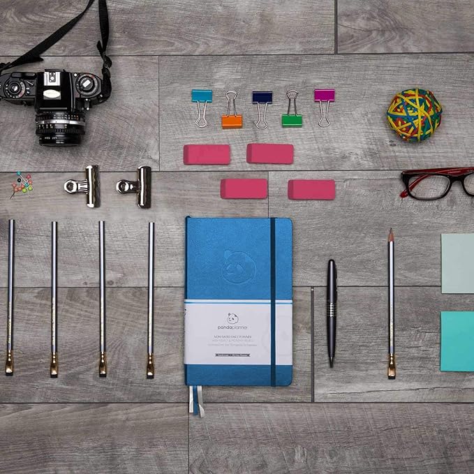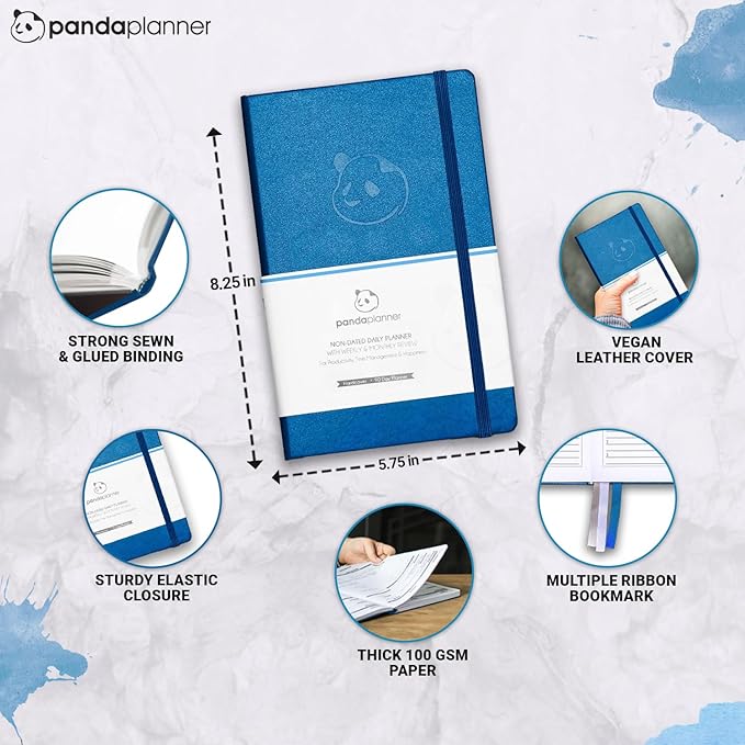 Panda Planner Classic A5 Daily Planner 2026 – Undated Daily & Quarterly Planner with Hourly Schedule, Productivity Calendar, To Do List, Goal Planner, Habit Tracker & Gratitude Journal for Home or Office – Blue