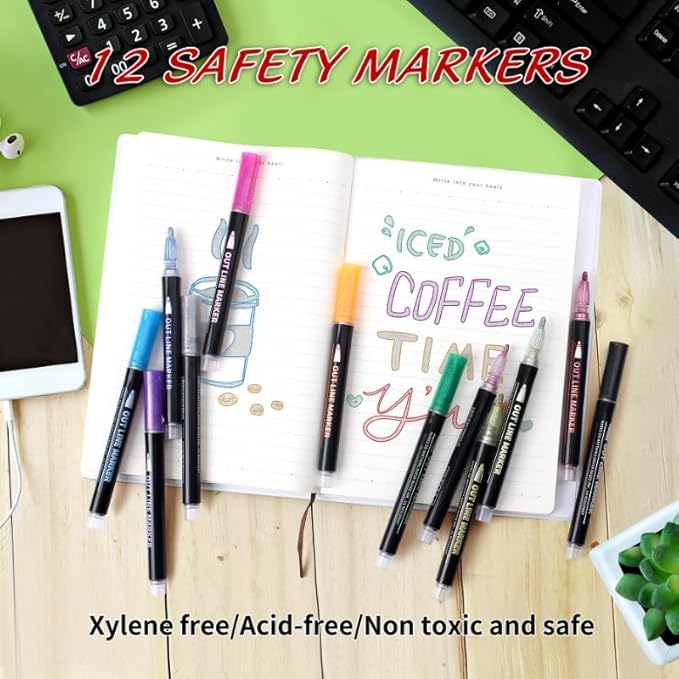 - 【100% Safety Non-Toxic】Upanic shimmer markers made with specially formulated,in line with the safety standard, quick-drying, non-toxic, odorless, environmentally-friendly.The water-based ink is chemically stable and fade resistant. Our outline marker is suitable for all ages of people to use safely, suggest children should be used under the supervision of adults.