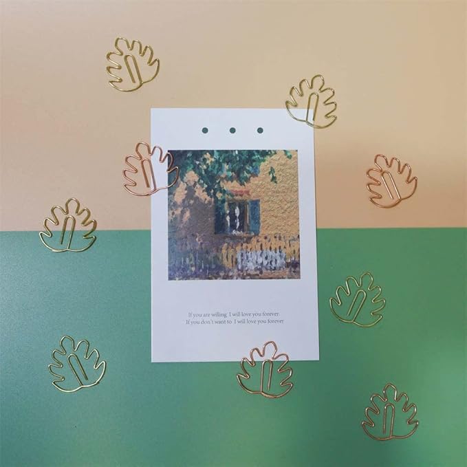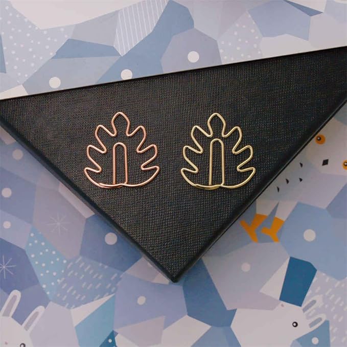 OWLFAVO 36pcs Monstera Shape Paper Clips with Clear Box, Rose Gold and Yellow Gold, Funny Cute Paperclips Bookmarks Planner Clips for Fun Office Supplies School Gifts Wedding Decoration