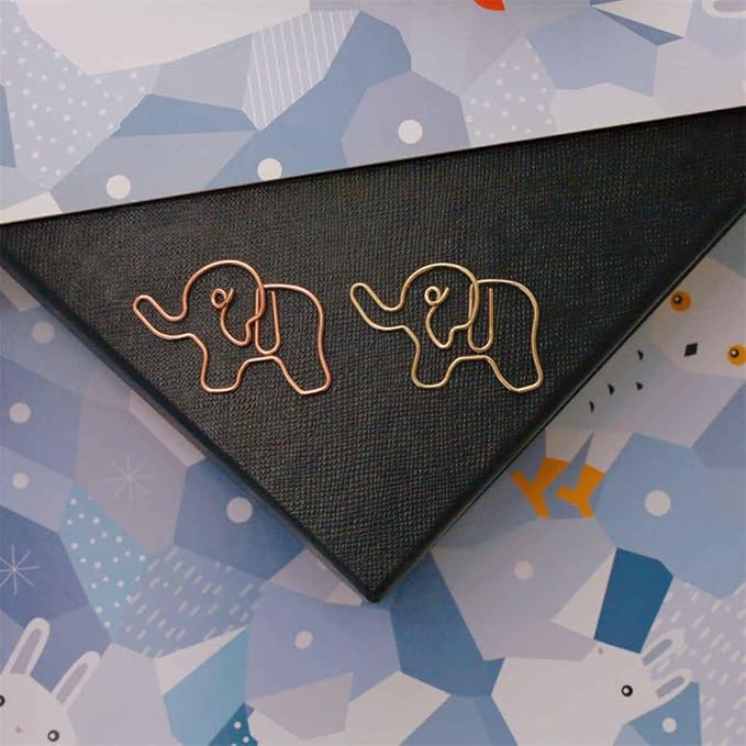 OWLFAVO 36pcs Elephant Shape Paper Clips with Clear Box, Rose Gold and Yellow Gold, Funny Cute Paperclips Bookmarks Planner Clips for Fun Office Supplies School Gifts Wedding Decoration