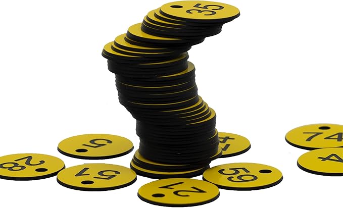 StayMax Plastic ID Number Tags Engraved Tags Key Tags Without Key Rings (1-100, Yellow)