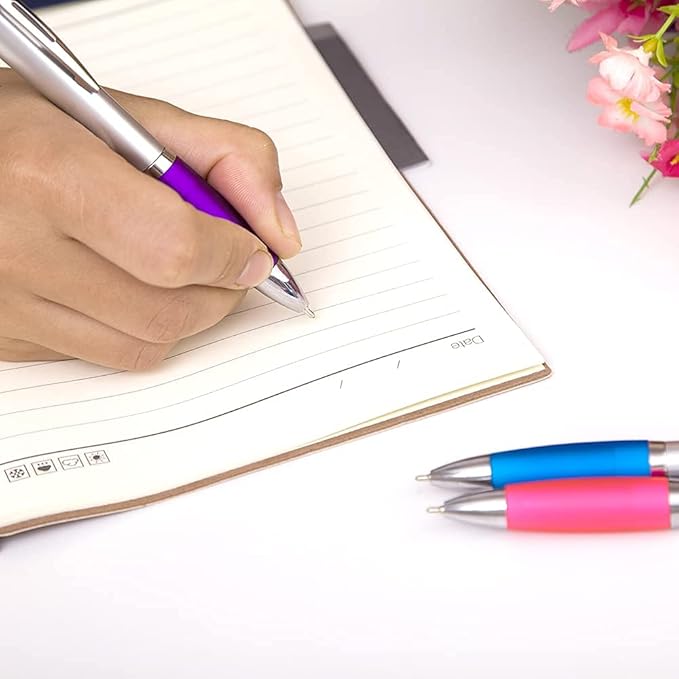 - DESIGNED FOR CONVENIENCE - Each ballpoint pen has a durable metal sliver clip that lets you fasten it to a notebook, binder, or pocket easily for signature jobs and daily writing jobs.