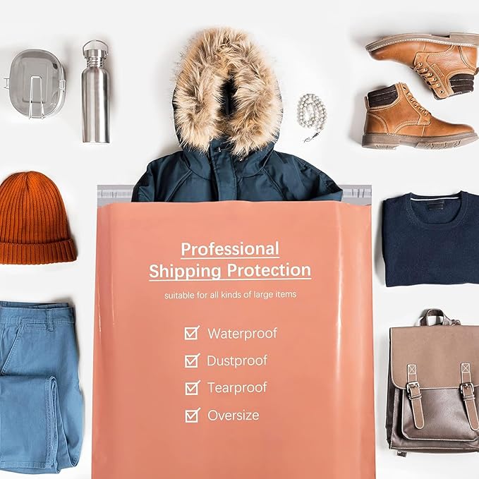- Large poly mailers - Poly mailers are great for shipping light and less fragile products. These large poly mailers are perfect for shipping a variety of items such as apparel and accessories, shirts, shoes, jeans, pants, jackets, coats, books, cosmetics, and much more.