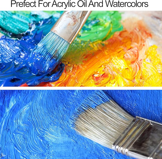 - ALL BRUSH TYPES: The set contains fan brushes, bright brushes, detailed brushes, round brushes, mop brushes, and angle brushes. All types are prefect working with all paint types
