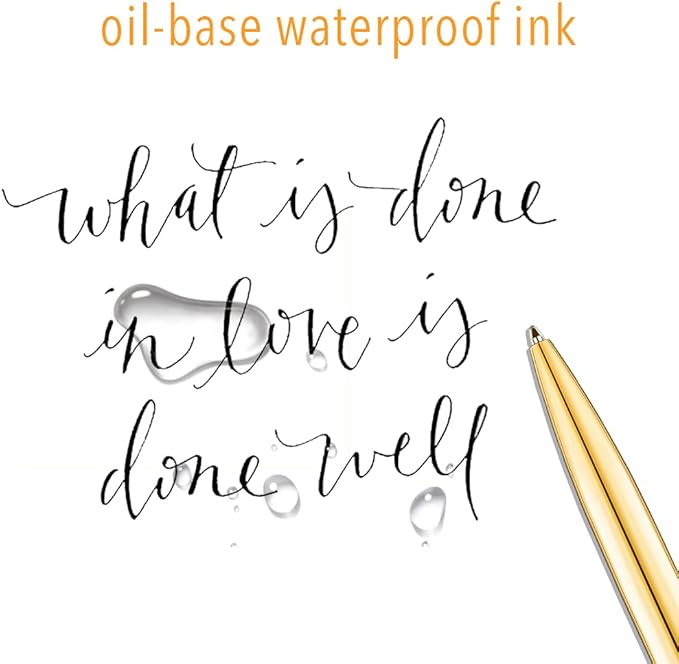 - 【GOLD BALLPOINT PENS】: Made of metal, with quality surface finishing will never be tarnished, High quality ink guarantee effortless smooth writing experience on work, nice weight to grip with well balance, sleekness really feels good in the hand.