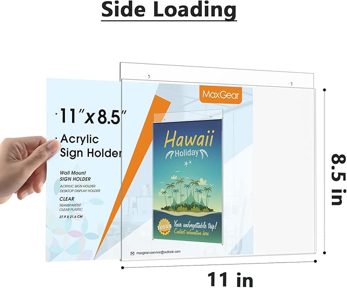 - MULTIPURPOSE DESIGN: 6 Pieces of acrylic sign holder presents an 8.5 x 11 inches paper in horizontal orientation. It is perfect for offices, churches, hospitals, post offices, restrooms, schools, and compliant postings. It helps you spread information by making it accessible to everyone.