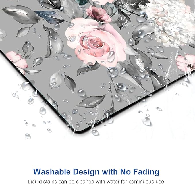 Mouse Pad, Gray Pink Roses Floral Flower Leaves Mouse Pad Rectangle Custom Designs, Waterproof Anti-Slip Rubber Mousepad Office Accessories Desk Decor Wireless Mouse Pads for Computers Laptop