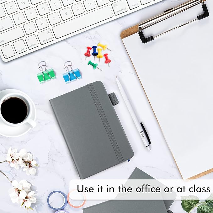 - Feela 6 Pack College Ruled Gray Notebooks contains 6 college ruled sturdy cover notebooks and 6 Black Retractable Pens. Each of the notebooks measures 3.5” x 5.5”, which is perfect to carry and easily held by young girls and boys. These black cute pens are customized to be placed in the pen holder, which is pretty convenient.