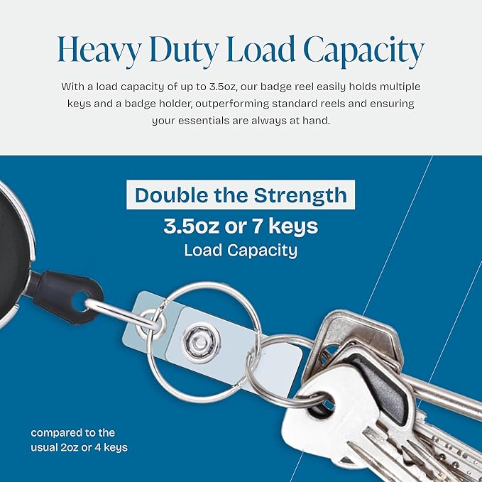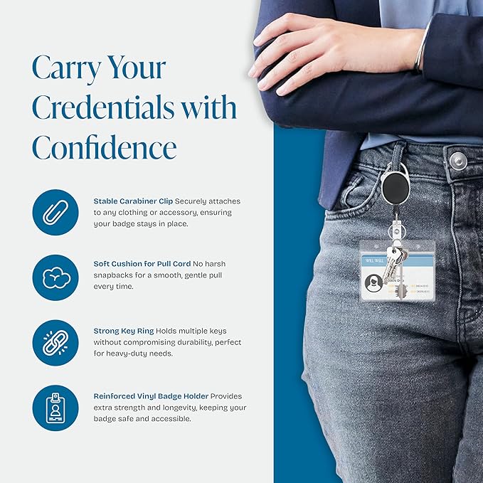 Will Well ID Badge Holders with Clip and Keyring - Horizontal Clear Plastic 2.52" x 3.58" Sleeves Fit Up to 3 Cards - Retractable 24" UHMWPE Fiber Pull Cords for Easy Access - 2-Pack, Black Reels