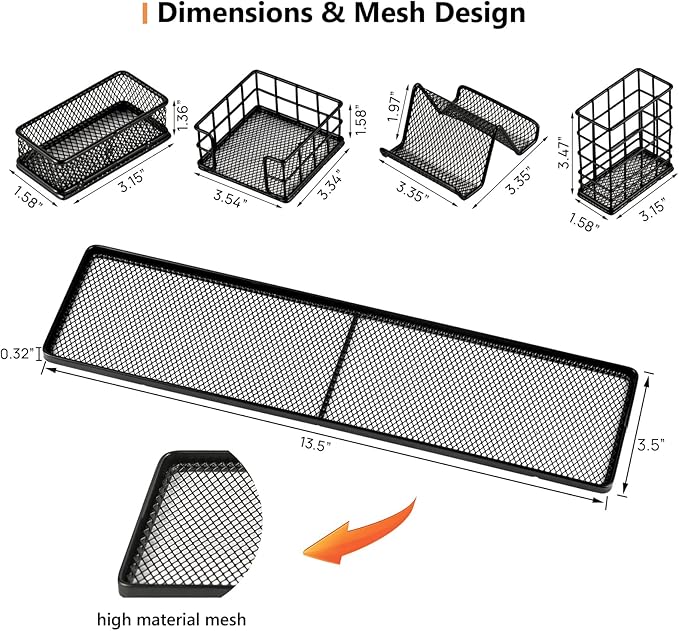 - 【HIGH QUALITY】: The main material of this pencil organizer is made of high-quality metal mesh, which will not deform after long-term use. The black matt lacquering, smooth edges and trim give it elegant polish.