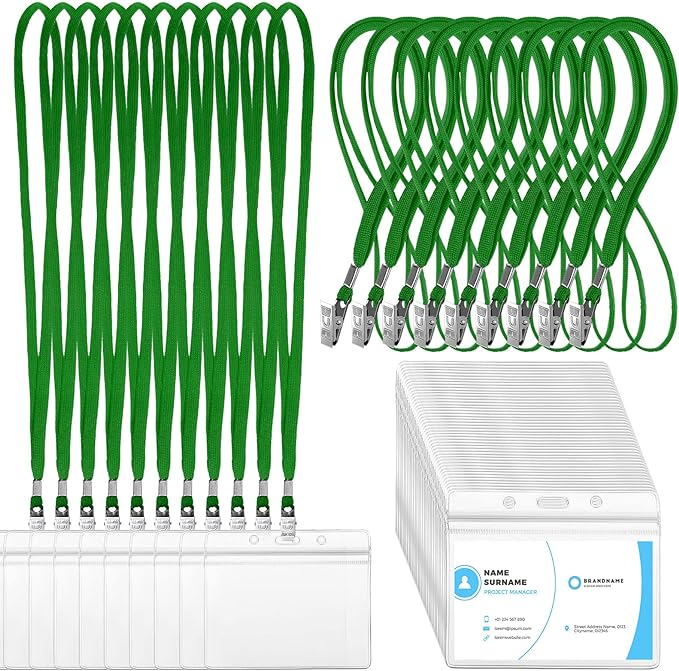- Package contents: 100 pieces of clear ID card holders with 100 pieces of flat neck lanyards that are available in bright color, which are suitable for most bag tags and ID cards, the enough quantity are enough for business travel office supplies