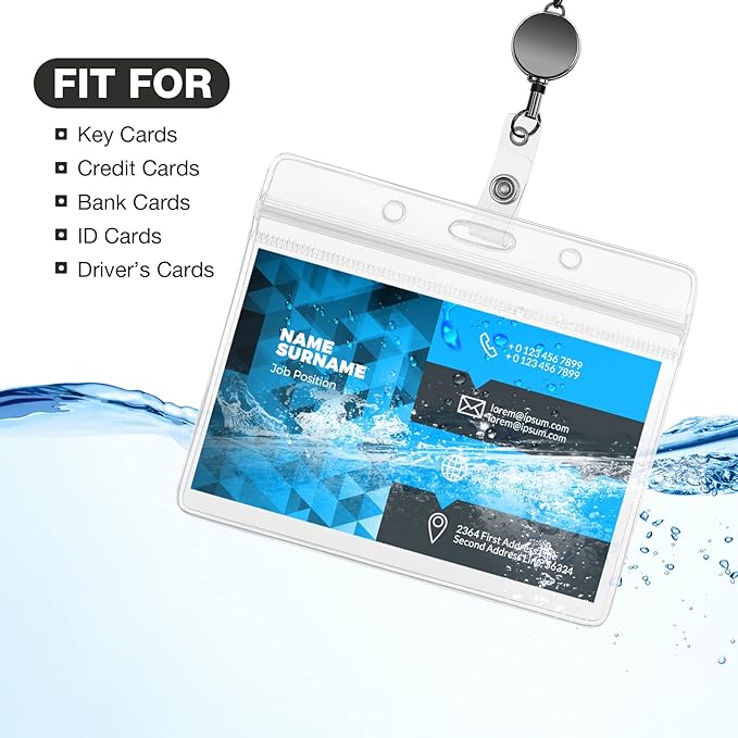 - Enough quantity and good combination: you will receive 2 pieces badge chains, 4 pieces water resistant ID holders and 2 pieces name badge clips, the good combination can easily meet your various needs