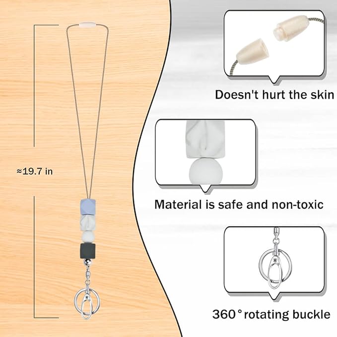 - 【Multi Purpose】This silicone bead lanyard is fit for student school card, key, staff card holder, USB flash drive, ID badge, charm, etc. It is perfect for V-neck shirts and button-down shirts, and it adds shine and fashion to any other outfit