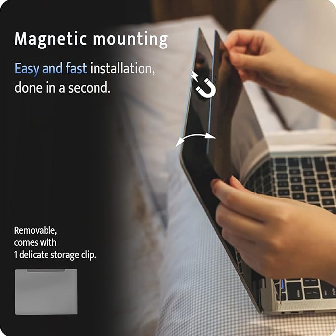 - 【ULTIMATE HIGH DEFINITION】Modeled in accordance with the real screen size 1:1 restoration, the size is perfectly matched. The magnetic strip that strengthens the magnetic force can make the MacBook privacy screen 15.4 inch stick to the screen tightly. The light-transmitting layer with advanced material has a super high light transmission rate. So all this will make you have a super high definition mac 15 privacy screen with unparalleled picture quality close to the original picture.