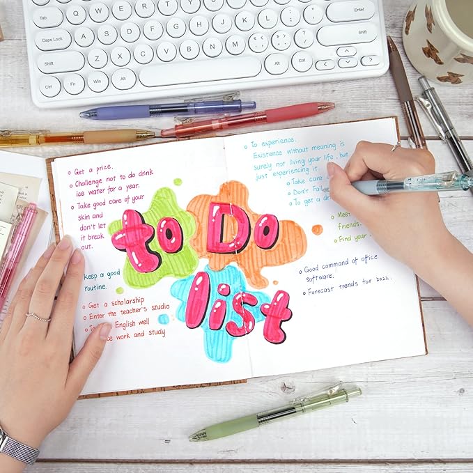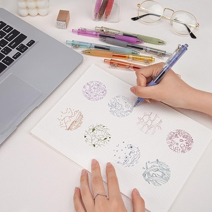 - Multi-function Pen Clip: You can clip the gel pens to the book or the bag, which is convenient to carry and prevents loss. Also when you click the clip, the tip will retract automatically, that will not stain your book or pocket.