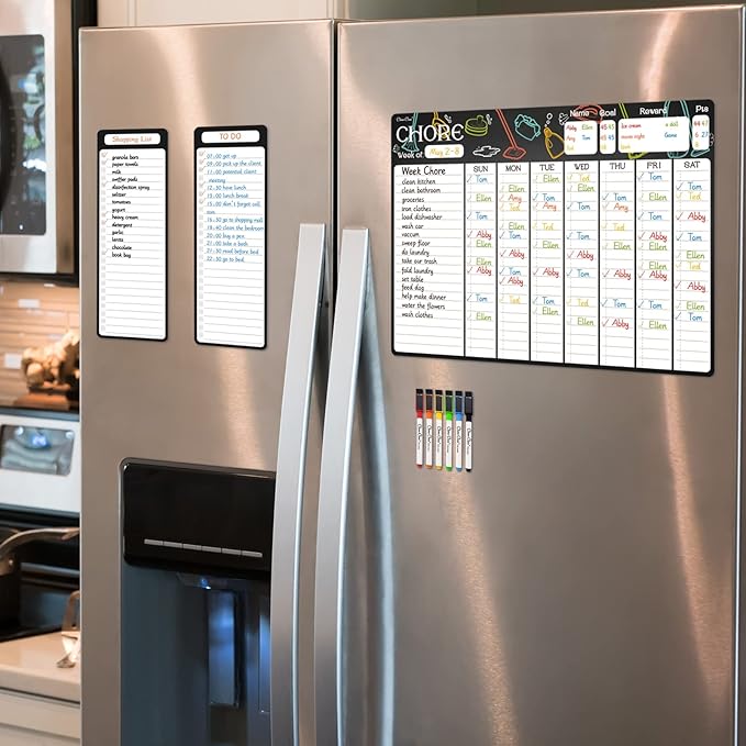 - Magnetic chore chart - Teach responsibility with our 17"x12" magnetic chore chart. It features 20 lines to track chores, making organization a breeze for kids, teens, and adults alike.