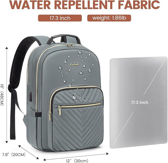LOVEVOOK Laptop Backpack for Women 17.3 inch,Cute Womens Travel Backpack Purse,Professional Laptop Computer Bag,Waterproof Work Business College Teacher Bags Carry on Backpack with USB Port,Grey