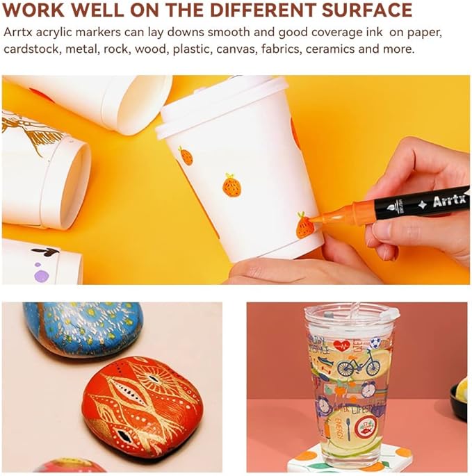 - Work well on Multi Surfaces - Arrtx drawing markers set provides water-based smooth ink for a variety of surfaces, including rock painting, metal, paper, wood, plastic, canvas, fabrics, ceramics, and more. Warmly tips: If you need to put your artwork outdoors or in water, it is recommended to spray sealant after drying, which avoids being reactivated by water and smears.